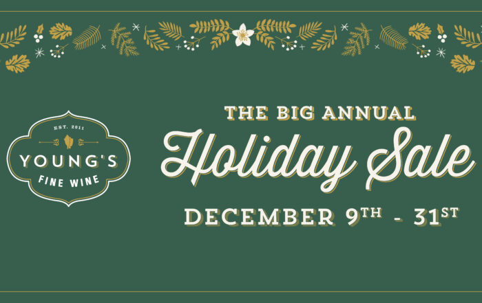 It's the most wonderful time of the year! And by that, we mean it's time for the Young's Fine Wine Big Annual Holiday Sale! December 9th - 31st 10% Off All Wines & Spirits* 20% Off when you mix and match 12+ bottles* Happy Holidays from Young's Fine Wine - Click to read more